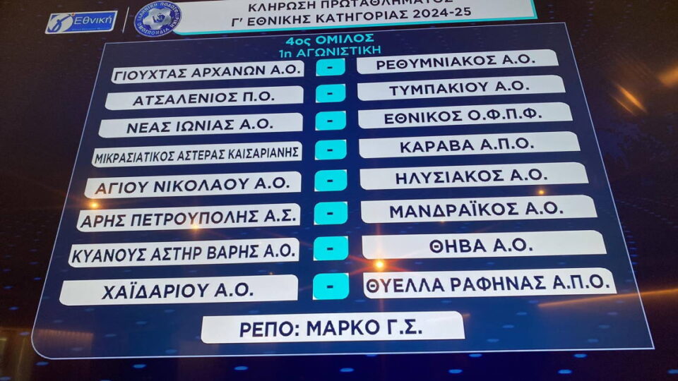 Πρώτη αγωνιστική με Νέα Ιωνία εκτός εδράς, αναλυτικά ολόκληρο το πρόγραμμα του 4ου ομίλου